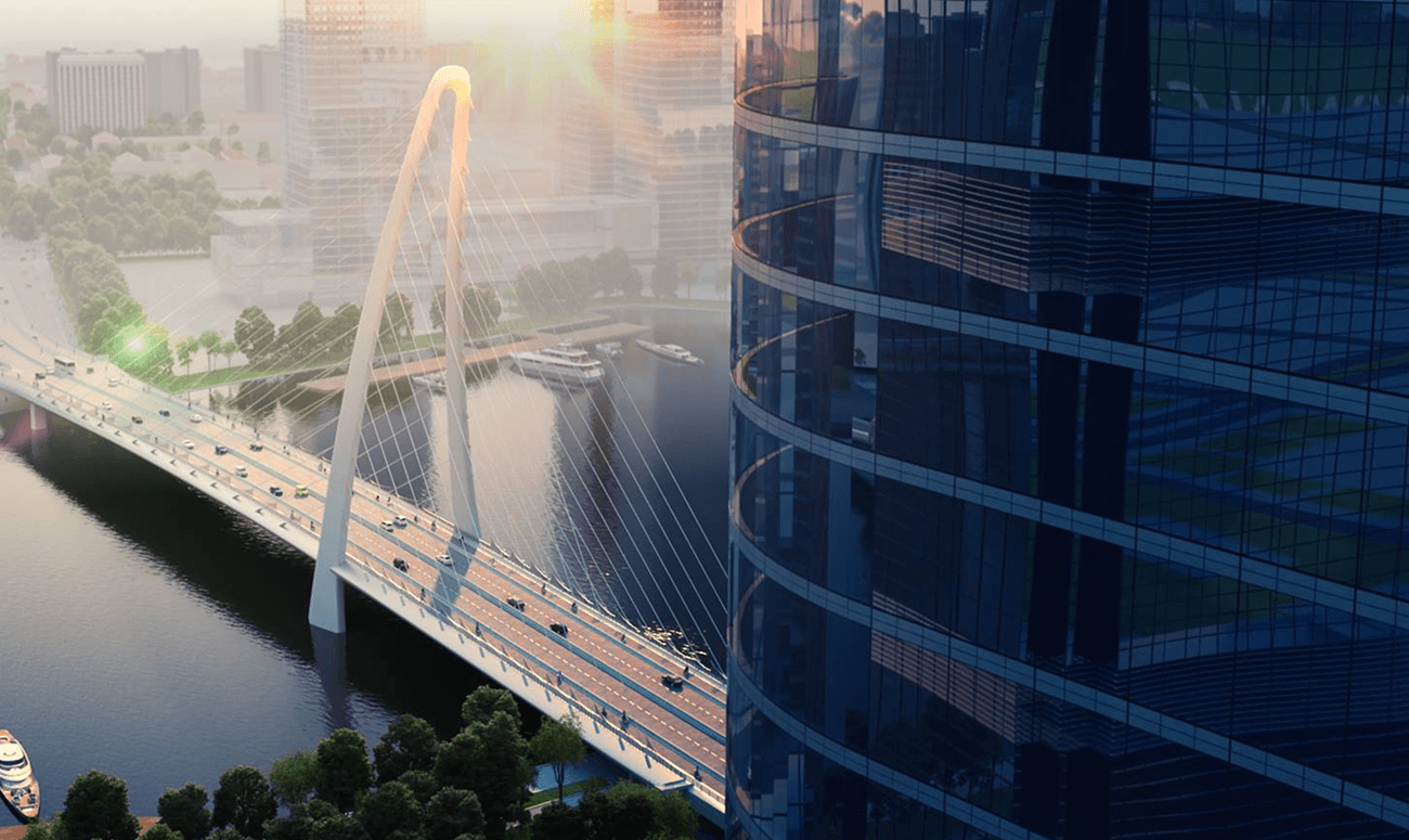 Cầu có thiết kế dây văng với trụ tháp chính mang kiến trúc Cầu Rồng cao 113m, là biểu tượng cổng chào từ trung tâm thành phố qua Đô thị mới Thủ Thiêm.